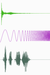- Die zweite eine Sinusschwingung mit sinkender Periodendauer.