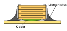 Darstellung eines SMD-Keramik-Vielschichtkondensators (MLCC) mit gut ausgebildeten Lötmenisken an den Löt-Anschlussflächen