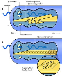 Diese Orts-Frequenztransformation zerlegt das Schallsignal grob in seine Frequenzen. Dadurch wird der cochleäre Verstärker (Cochlear-Amplifier) in den äußeren Haarzellen aktiviert, der den Zerlegungsprozess der Frequenzen soweit verstärkt, dass einzelne Frequenzen vom Ohr unterschieden werden können. Dieser Mechanismus ist eine wichtige Grundlage, menschliche Sprache verstehen zu können.