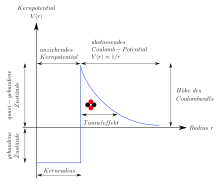 Die Kernphysik ist ein weiteres großes Anwendungsgebiet der Quantentheorie. Atomkerne sind aus Nukleonen zusammengesetzte Quantensysteme mit einer sehr komplexen Struktur. Bei ihrer theoretischen Beschreibung kommen – abhängig von der konkreten Fragestellung – eine Reihe konzeptionell sehr unterschiedlicher Kernmodelle zur Anwendung, die in der Regel auf der Quantenmechanik oder der Quantenfeldtheorie basieren.[6] Im Folgenden sind einige wichtige Anwendungsfälle der Quantenmechanik in der Kernphysik aufgeführt: