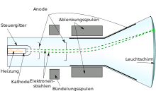 Die klassische Kathodenstrahlröhre mit Leuchtschirm zeigt in der Praxis unterschiedliche Arten der Elektronenstrahlführung: