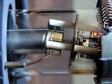 In Kathodenstrahlröhren ist die Anode oft geteilt. Sie besteht aus: