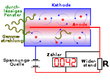 - oder als Geiger-Müller-Zählrohr (auch Auslösezählrohr, Geiger-Müller-Zähler oder Geiger-Müller-Indikator genannt).
