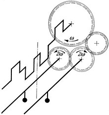 - Beim Umlaufmotor dreht sich das Motorgehäuse um die Kurbelwelle. Sie kann stillstehen oder sich ebenfalls drehen, wobei sie mit dem Motorgehäuse über Zahnräder gekoppelt ist, zum Beispiel beim Megola-Motorrad. Die Zylinder kreisen um die Kurbelwellenachse. Die Hubzapfen sind exzentrisch angeordnet, wodurch der Hub der einzelnen Kolben in den Zylindern zustande kommt, genau wie beim Standmotor. Frühe Flugmotoren waren häufig Stern-Umlaufmotoren.