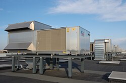 - Abluftwärmenutzung zur Wärmerückgewinnung, also Erwärmung der Zuluft bei der Belüftung klimatisierter Gebäude oder für Passivhäuser, sog. Luft-Luft-Wärmetauscher.