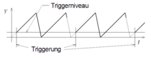 Ein anliegendes Signal wird fortlaufend gemessen und vom linken Rand der Anzeigefläche bis zum rechten immer wieder neu gezeichnet. Um bei den periodischen Signalen ein stehendes Bild zu erhalten, ist es nötig, den Bildschirm-Durchlauf so lange aufzuhalten, bis das darzustellende Signal einen festgelegten Anfangszustand erreicht. Erst dann wird eine neue Darstellung ausgelöst. Die Durchläufe sind somit identisch und frischen das Bild immer wieder auf.