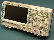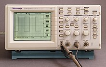 Ein Oszilloskop (lat. oscillare „schaukeln“, altgr. σκοπεῖν skopein „betrachten“) ist ein elektronisches Messgerät, das in seiner bevorzugten Anwendung für eine oder mehrere elektrische Spannungen deren zeitlichen Verlauf auf einem Bildschirm sichtbar macht. Das Oszilloskop stellt einen Verlaufsgraphen in einem zweidimensionalen Koordinatensystem dar, wobei üblicherweise die (horizontale) x-Achse die Zeitachse ist und die (vertikale) y-Achse die Spannungsachse. Das so entstehende Bild wird als Oszillogramm bezeichnet.