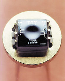 Auf diese Gleichung wird in der Mikroelektronik und in der Sensortechnik in ganz erheblichem Maße aufgebaut. Auf Dehnung empfindliche Widerstände können auf Verformung je nach Applikation der Widerstände mit positiver oder negativer Widerstandsänderung reagieren und sich in der Gleichung ergänzen, während sich Temperatureinflüsse, die auf alle gleich wirken, aufheben. Widerstände, die sich auf einer elastischen Unterlage befinden, erfassen damit Kräfte, Drücke, Drehmomente usw. Kleine relative Längenänderungen unter 10−4 können damit noch erfasst werden. Das Bild zeigt ein Druckmessgerät in dieser Technik: Eine Membran aus Silizium, das hochwertige elastische Eigenschaften aufweist, wird durch Druck verformt; an Stellen mit besonders starker Biegung sind Widerstände eindiffundiert; mit jeweils drei Bonddrähten entsteht jeweils die Hälfte einer Wheatstone-Brücke.