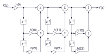 Die einzelnen elementaren FIR-Filter können dabei wieder in der Normalform 1 oder Normalform 2 auftreten. Die Überführung der Filterkoeffizienten von der Normalform in eine kaskadierte Form erfordert eine Transformation der Filterkoeffizienten.