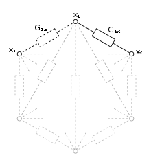 ![]() Polygonschaltung Jeder Anschluss ist mit jedem anderen Anschluss über einen Widerstand verbunden. |