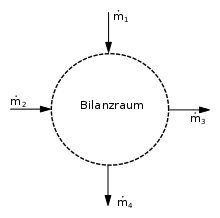Gibt es mehrere ein- oder austretende Massenströme, wird die Massenbilanz verallgemeinert und die Summe der Massenströme betrachtet.