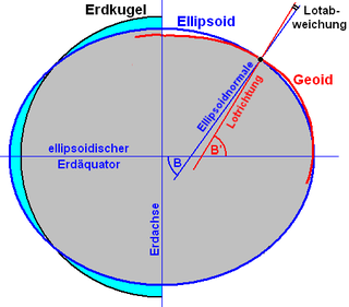 - von der Lagerung des Referenzellipsoids der Landesvermessung – siehe auch Geodätisches Datum.