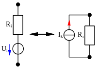 Eine Ersatzschaltung für einen aktiven Zweipol besteht aus einer Ersatzspannungsquelle