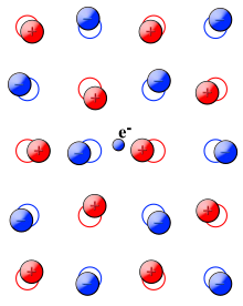Wenn sich Elektronen durch einen Kristall bewegen, erzeugen sie auf Grund ihrer elektrischen Ladung in ihrer Umgebung eine Polarisation (siehe Bild). Diese „Polarisationswolke“ bewegt sich zusammen mit dem Elektron und bewirkt eine Erhöhung der effektiven Masse, besonders in sog. polaren Kristallen (z.B. mit unterschiedlichen Ionenladungen). Den Deformationen, die auf diese Weise erzeugt werden, ordnet man in theoretischen Annahmen selbständige Quasiteilchen zu, die man Polaronen nennt.
